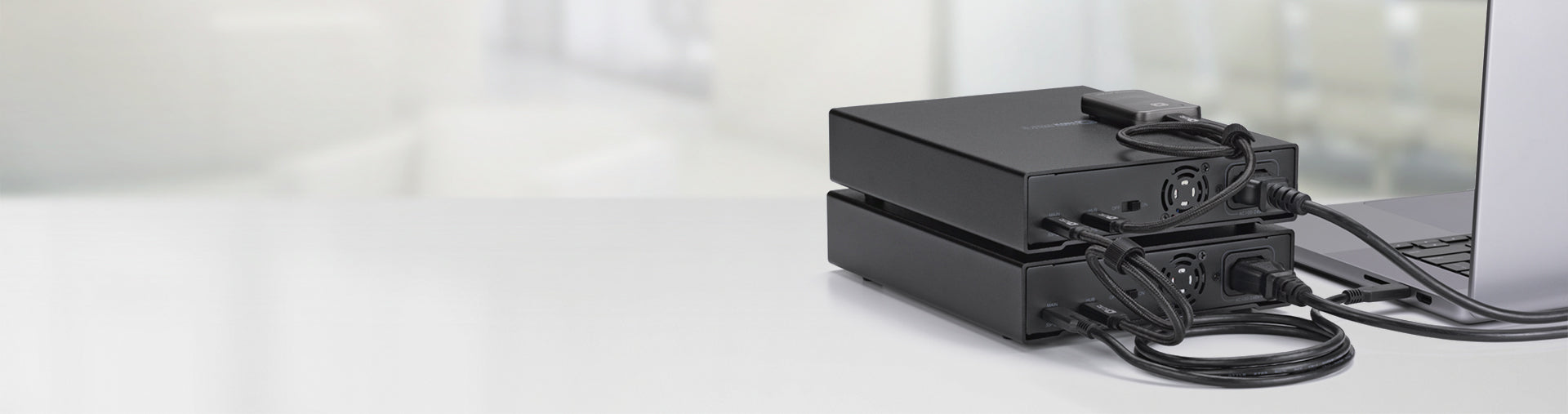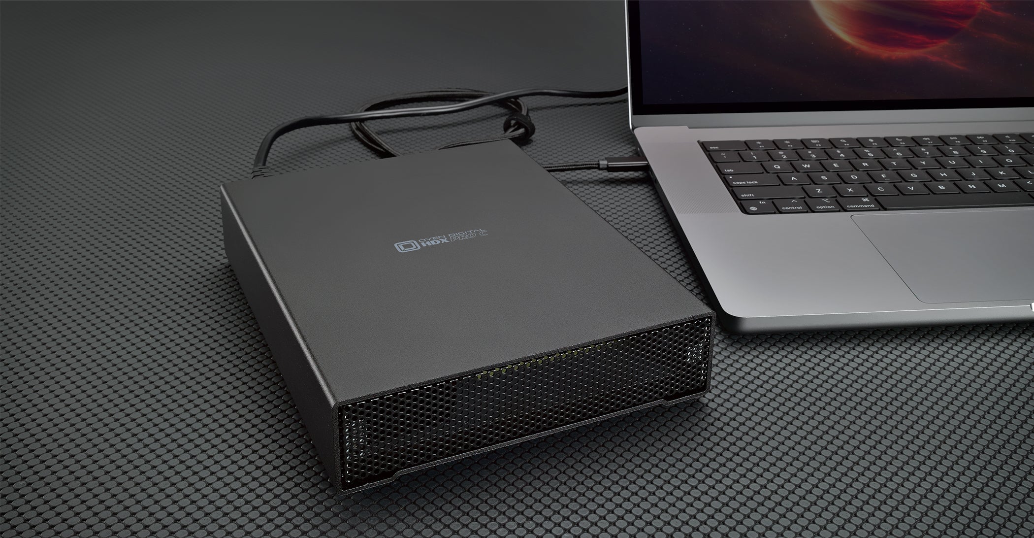 The HDX Pro C is a professional-grade external hard drive enclosure using the latest ASMedia USB-C technology to provide enterprise performance in a durable device. Built entirely from aluminum, the HDX Pro C utilizes the highest quality construction for power users who need dependable storage. Airflow is enhanced by the dual ball-bearing fan and vented aluminum shield. The internal power supply eliminates the need for an inconvenient wall adapter and makes for a clean and simple setup. The HDX Pro C is compatible with all USB and Thunderbolt 3, 4 & 5, and provides a USB-C hub port for daisy-chaining with additional HDX or USB devices. The HDX Pro C is backed by an industry-leading 4 year warranty.